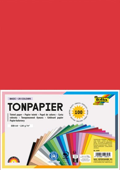 Der Tonpapier-Mix bietet 100 Blatt hochwertiges Bastelpapier im Format DIN A4, sortiert in 25 kräftigen Farben.